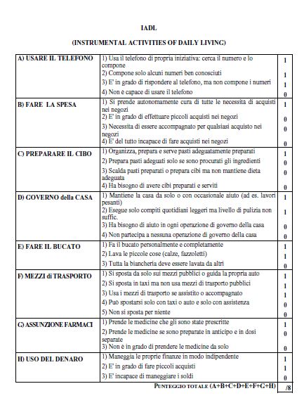 Al fine di favorire la corretta valutazione e quantizzazione del grado di autonomia personale e funzionale, si eseguono test clinici di comprovata validità.